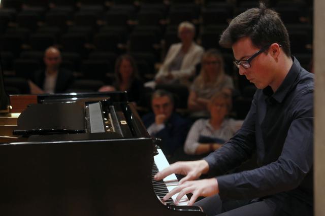 La presentació de la nova edició del concurs ha finalitzat amb la interpretació de piano de l’obra Preludi opus 23 nº 5 de Rakhmàninov, a càrrec de l’alumne de sisè de Grau Professional Pablo Alonso Perez.