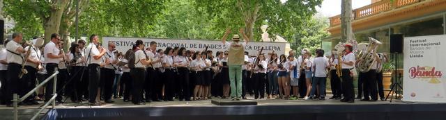 El Festival ha finalitzat amb la interpretació conjunta dels components de les quatre bandes que aquest matí han actuat (Blai Band de Sant Boi, Banda Municipal de Ejea de los Caballeros, la Primitiva Setabense de Xàtiva i Les Sans Soucis de Bordeus), els quals, sota la direcció d’Amadeu Urrea, han interpretat el pas doble català “Avant! Sempre avant!”, compost per Cosme Ribera l’any 1912 i dedicat als músics de la Banda Popular de Lleida.