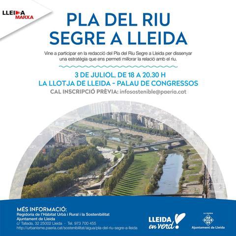 L’esdeveniment, que tindrà lloc a la Llotja el proper 3 de juliol, de 18 a 20.30 hores, té l’objectiu de reflexionar i prioritzar les actuacions contemplades en el Pla del Riu Segre a Lleida i proposar mesures per abordar aquest repte. Es portaran a terme diverses dinàmiques de grups i una posada en comú. El tinent d’alcalde i regidor d’Hàbitat Urbà, Rural i la Sostenibilitat, Fèlix Larrosa, serà l’encarregat de cloure la sessió.
