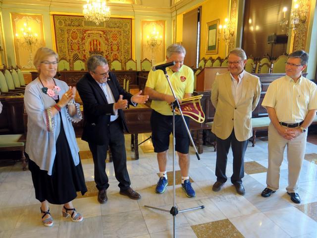 L'alcalde, Àngel Ros, rep al Saló de Sessions al pare Joaquín Pina i als 46 membres de l'equip que viatjarà a París per participar en un torneig internacional
