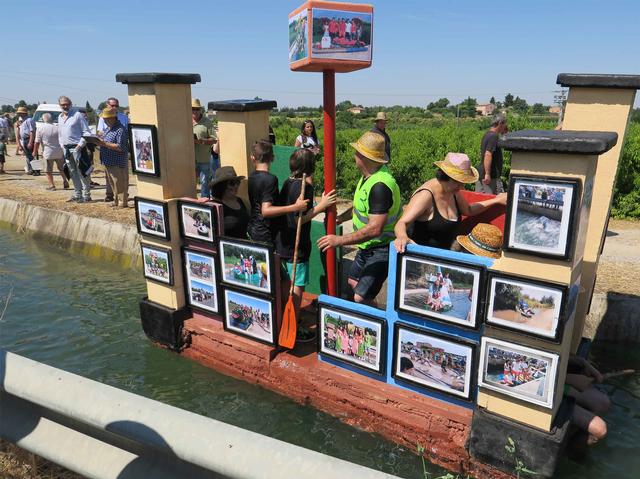 El tinent d’alcalde i regidor de l’Horta, Fèlix Larrosa, saluda els participants que han navegat un any més per la sèquia major del Canal de Pinyana amb motiu de la Festa Major de la partida