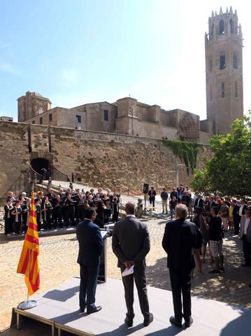 L’alcalde de Lleida, Fèlix Larrosa, ha assistit aquest migdia a l’acte institucional organitzat per la Generalitat de Catalunya a Lleida amb motiu de la Diada a la Seu Vella, davant del Pont Llevadís.