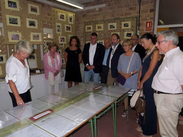La directora de l’escola Antoni Bergós, Maria José Huete, ha explicat el contingut de la mostra, en la qual es poden apreciar llibres, fotos, manuscrits, treballs vinculats a la figura de l’homenatjat, així com un vídeo sobre cedit per Òmnium, en el qual es pot veure i escoltar a Bergós en una conversa.