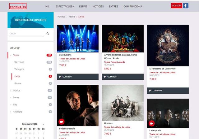 Les entrades es podran comprar només durant les 24 h d’avui dimarts, 25 de setembre, a la plataforma d’Escena 25, i permetran veure les obres 25 il·lusions”, “El fantasma de Canterville”, “Federico García”, “Tr3sx1”, “Un tret al cap”, “Humans”, “Falstaff”, “Miedo”, “Un cop l’any”, “La resposta” i “Cronología de las besties” que es representaran durant la temporada de tardor al Teatre de La Llotja. El programa Escena 25 posarà a la venda 50 entrades per a cadascun d’aquests espectacles i a aquests preus: