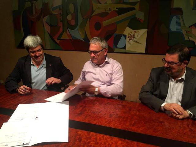 El tinent d'alcalde Joan Gómez i el president de l'entitat, Enric Garriga, han firmat avui un conveni de col·laboració, que inclourà una exposició, conferències als instituts i viatges d'alumnes de Secundària a Mauthausen