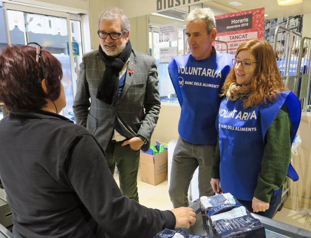 L’alcalde ha visitat al migdia un dels 61 punts de recollida que hi ha a Lleida ciutat, uns 210 al territori, acompanyat del tinent d’alcalde Xavier Rodamilans; del president del Banc d’Aliments de Lleida, Joan Ramón Saura, i del director de l’àrea de responsabilitat social corporativa de Plusfresc, Rafel Oncins.