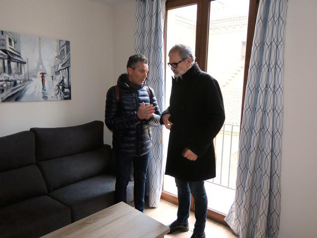 El paer en cap ha tingut una trobada amb el president del Col·legi d’Administradors de la Propietat Immobiliària (API) de Lleida, Josep Maria Esteve, i junts han visitat un edifici del carrer Sant Joan, en ple Eix Comercial, que acaba de ser rehabilitat integralment per acollir 9 habitatges i 8 despatxos professionals. Larrosa ha posat aquest projecte com a exemple de les actuacions de regeneració que necessita el Centre Històric.
