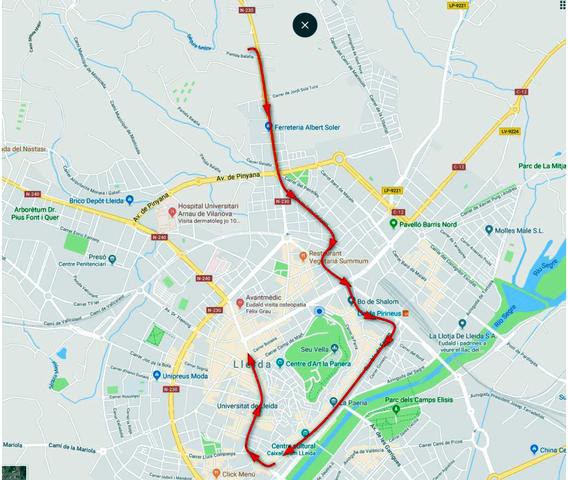 No es podrà circular amb vehicle particular per l’eix central de la ciutat, format per carrers Av. Balmes, Rambla d’Aragó i Av. De Catalunya, entre les 12 i les 13.30 hores. Una bona alternativa per realitzar el trajecte entre la Zona Alta i el centre de la ciutat en aquesta franja horària, és circular pel passeig de Ronda, Av. Princep de Viana i el carrer Anselm Clavé.