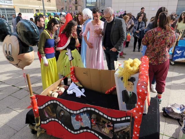Una dotzena d’andròmines recorren el trajecte entre les places de Sant Josep i Sant Joan, animats pels ciutadans que han gaudit de veure les proves que han estat sotmesos els participants El paer en cap, Fèlix Larrosa, saluda els participants i la tinent d’alcalde Montse Parra dóna la sortida a la cursa, que ha acabat guanyant l’equip ‘Disney’