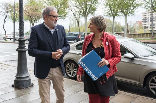 El paer en cap, Fèlix Larrosa, ha rebut aquest matí al Palau de la Paeria a la consellera de Salut de la Generalitat de Catalunya, Alba Vergés Bosch, que es troba avui en visita institucional a la ciutat.