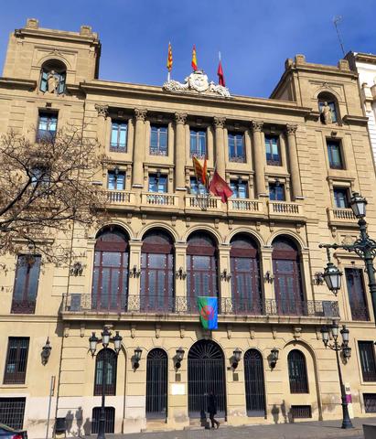 La bandera gitana, representada per la roda de carro, és senyal d'identitat de la comunitat romaní. Durant el dia d’avui oneja al balcó de la Paeria amb motiu del Dia Internacional del Poble Gitano.