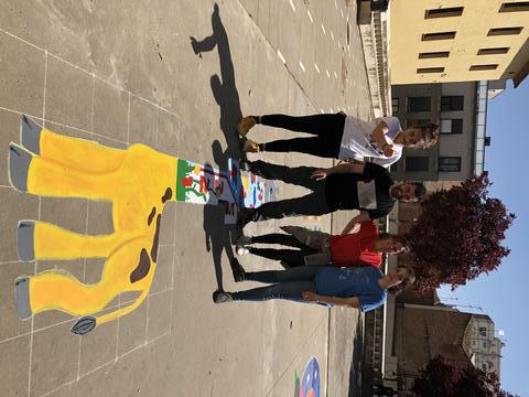 Dins del projecte “Deixempremta” han realitzat una intervenció a la plaça de l'Hort de Santa Teresa consistent en la pintura d’uns jocs gegants a terra i un grafit