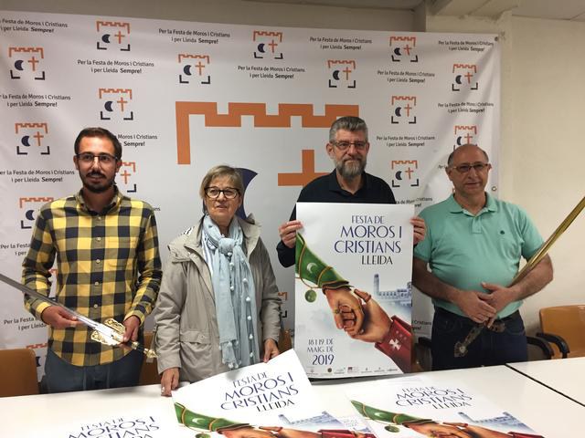 La tinent d’alcalde Montse Parra ha presidit avui la presentació, acompanyada del president de l’Associació de la Festa de Moros i Cristians, Josep Lluís Gàzquez, del caid moro, Pau Cabiscol, i del comte cristià Fèlix Villahoz.