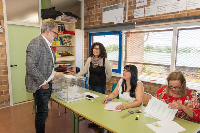 L’alcalde diposita el seu sufragi pels comicis a l’Ajuntament de Lleida i al Parlament Europeu al col·legi electoral Joc de la Bola