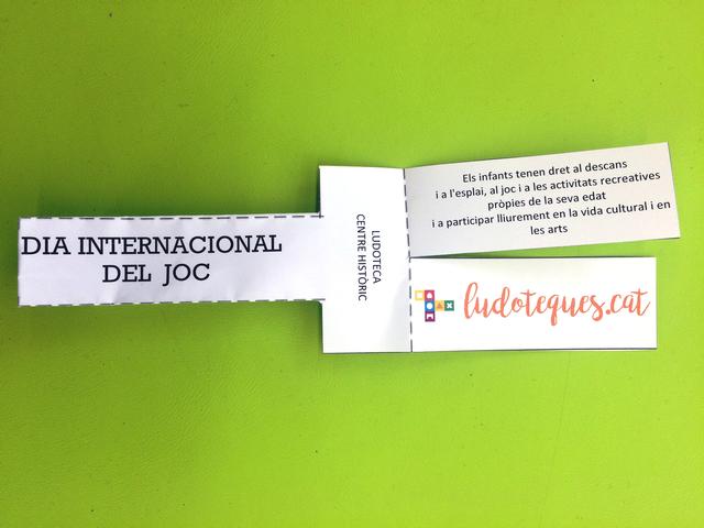La Xarxa Municipal de Ludoteques celebra avui, dia 28, el Dia Internacional del Joc, amb un seguit d’actes preparats per a l’ocasió. Avui, es farà per primer cop conjuntament amb les ludoteques de Catalunya una manualitat de papiroflèxia, un helicòpter de paper. L’activitat és fruit del treball conjunt que s’està duent a terme entre les ludoteques d’arreu de Catalunya dins el programa Ludos XXI.