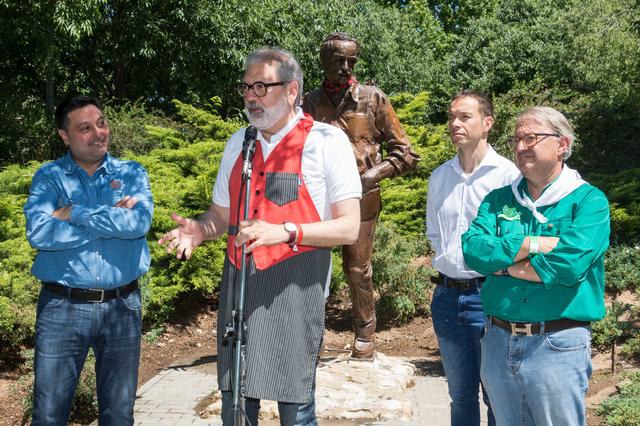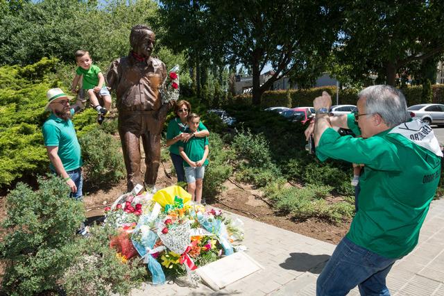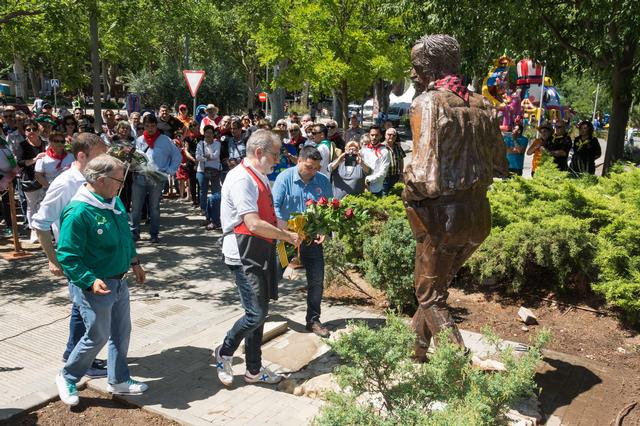 El paer en cap i diversos membres de la corporació municipal participen en l’ofrena floral davant l’estàtua de Manolo Calpe Fèlix Larrosa diu que està convençut que des d’allà on són estan espentejant perquè la festa sigui un espai de convivència, cordialitat i disbauxa per la ciutat de Lleida