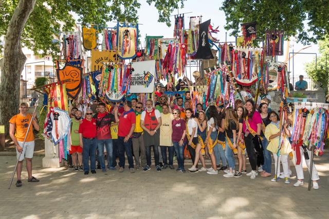 El paer en cap Fèlix Larrosa, acompanyat de la tinent d’alcalde Montse Parra, el regidor Joan Queralt i el president de la Fecoll, Ferran Perdrix, ha imposat les insígnies als penons, després d’haver donat el tret de sortida a la cercavila dels collistes pels carrers de la ciutat