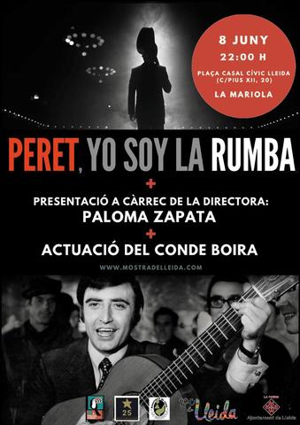 La projecció del documental "Peret, yo soy la rumba" tindrà lloc el dissabte 8 de juny, a les 22 h, i serà presentat per la seva directora, Paloma Zapata