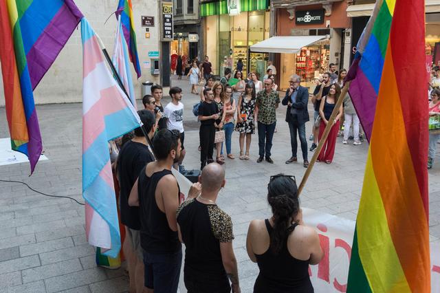 Diversos membres d’aquest col·lectiu han llegit el manifest del Dia Internacional i han anunciat pel pròxim 12 de juliol la celebració a Lleida de la manifestació per commemorar el Dia de l’Orgull.