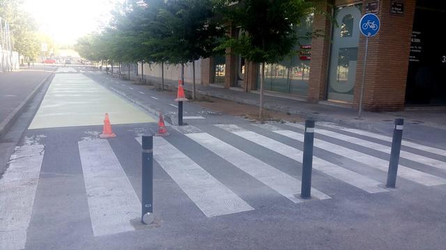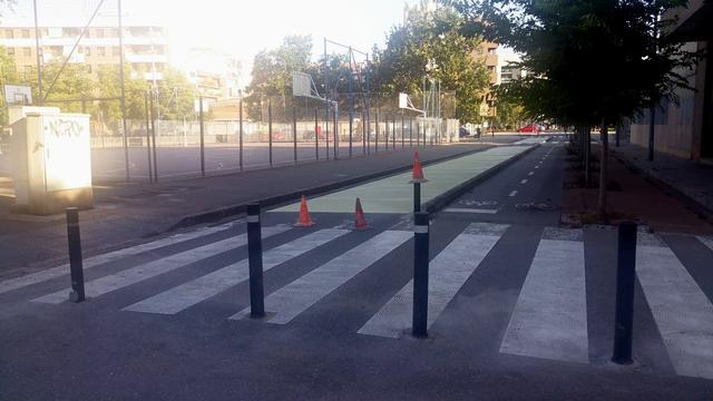 Els treballs han consistit en la col·locació d’unes pilones a l’entrada i sortida del carrer i en la pintura -en color verd- de tota la calçada.