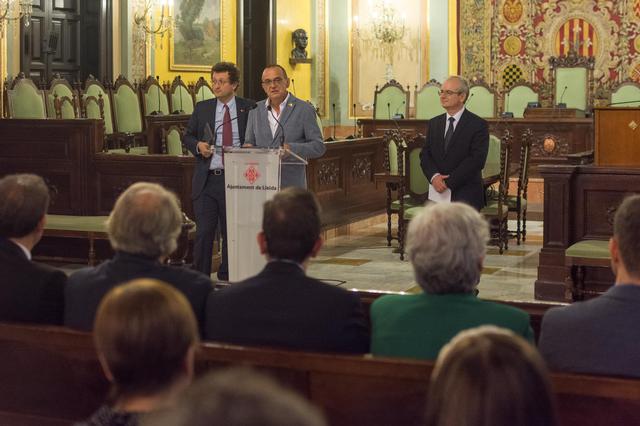 Prèviament a la inauguració , l’alcalde Miquel Pueyo ha presidit la recepció oficial a la delegació de la república de Belarús als qui ha donat la benvinguda a la ciutat i a la Paeria, “que la paraula pau formi part de les arrels del govern de la ciutat em sembla una de les millors cartes de presentació de Lleida”. L’alcalde Pueyo ha recordat que la ciutat comparteix amb Belarús el dolor d’haver patir la cruesa de la guerra i ha afirmat que encara no s’ha gestionat de forma definitiva el tema de la memòria històrica.