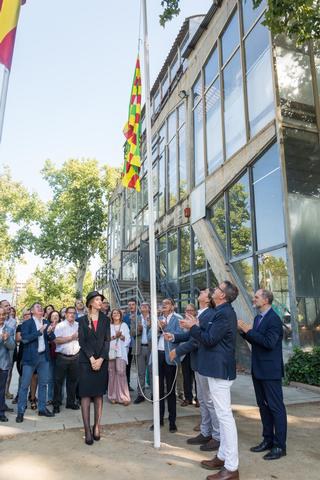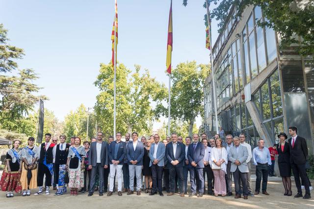 Abans d’iniciar-se la visita pels estands de la Fira, David Masot, com a president del Consell Comarcal, ha estat l’encarregat d’hissar la bandera del Segrià en el pal de banderes de l’entrada del recinte.