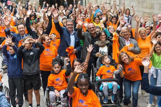 Flashmob “Jo sóc com tu” a la plaça de la Paeria per conscienciar sobre la paràlisi cerebral