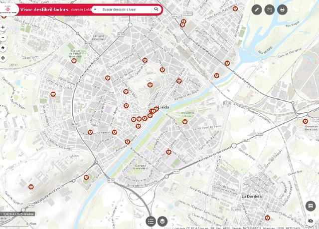 L’Ajuntament de Lleida posa al servei de la ciutadania una mapa amb la xarxa de 45 desfibril·ladors (DEA) municipals que hi ha instal·lats als diferents barris de la ciutat per atendre les aturades cardíaques o fer-ne ús en situacions d’emergència. Els aparells estan ubicats en edificis públics i al carrer de manera estratègica, en punts avaluats per quantitat de persones i per les característiques dels espais, per donar la màxima cobertura. El mapa, que es pot consultar aquí, és una de les accions impulsades per la Paeria en el marc del projecte “Lleida – Ciutat cardioprotegida”.