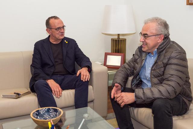 Nova reunió del paer en cap, Miquel Pueyo, amb els alcaldes de capital de comarca de la plana de Lleida, en aquest cas amb el seu homòleg de les Borges Blanques, Enric Mir. Pueyo ha explicat que l’objectiu de les trobades és exposar aquells punts que agermanen el territori per establir quines són les seves prioritats i necessitats i unir-se per reivindicar-les. El transport, les comunicacions o el sector primari són temes que preocupen a la demarcació i “creiem que els alcaldes i alcaldesses podem exercir un paper de “lobby” per defensar aquestes necessitats i punts de vista”