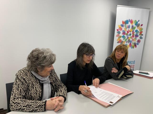 Han participat en la signatura del conveni Marçal Abella, representant d’Alpicat Solidari i Glòria Ferrer, representants de Veïns del Món Solidari.