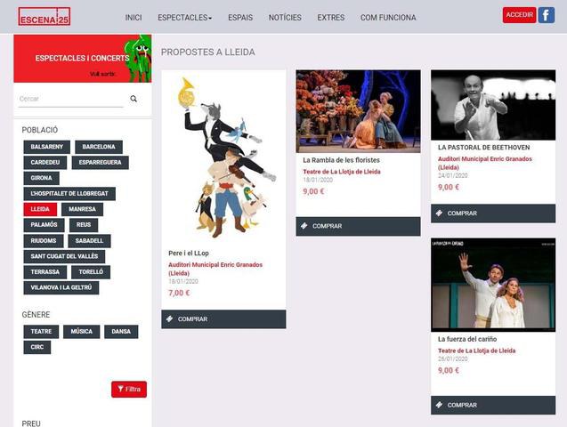 La iniciativa s’aplica a 8 espectacles del Teatre de la Llotja i 23 concerts de l’Auditori Municipal Enric Granados que estan programats fins al junyExcepcionalment la plataforma Escena 25 s’ha obert avui per comprar entrades del mes de gener. Per comprar les del mes de febrer s’obrirà els dies 25 i 26 de gener. Per a la resta de mesos fins al juliol, la plataforma s’obrirà cada 25 i 26 de mes per comprar entrades del mes següent