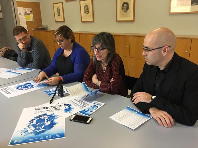 La regidora d’Educació, Cooperació, Drets Civils i Feminismes de l’Ajuntament de Lleida, Sandra Castro, ha presidit la roda de premsa de presentació de la Setmana Cultural. Ho ha fet acompanyada del director del Conservatori i Escola de Música, Josep Lluís Boix; del cap d’estudis, Agustí López, i de la coordinadora d’Educació, Cooperació, Drets Civils i Feminismes de la Paeria, Meritxell Morera.