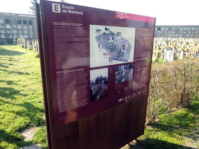 Salut Pública s’ha fet càrrec de la reposició de quatre plaques en el cementiri. Dues a l’exterior del recinte municipal i la resta a les dues portes laterals d’accés. En la del carrer Almeria, s’informa que en aquell indret es van afusellar centenars de persones, condemnades en els consells de guerra (1939-45), per haver-se significat a favor de la República, abans d’entrar els seus cossos al cementiri. En la porta d’accés de la carretera de Tarragona, hi ha una altra placa, que recorda per on eren introduïdes les víctimes del bàndol que van ser executades (1936-38) per rebel·lar-se contra la legalitat republicana.