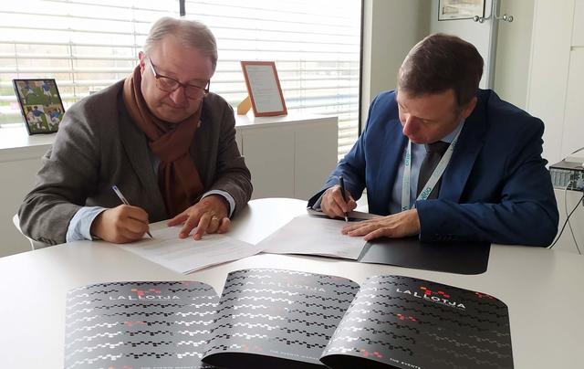 El tinent d’alcalde de Promoció Econòmica i Emprenedoria i president del Consell d’Administració del Centre de Negocis i Convencions (CNC), Paco Cerdà, i el director general d’AgriNews, Lluís Carrasco, han signat avui l’acord pel qual Lleida serà la seu dels congressos Porciforum i Nutriforum, fins l’any 2023, al Palau de Congressos - La Llotja.