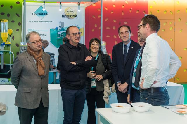 L’alcalde ha visitat els estands presents al congrés, amb el tinent d’alcalde Paco Cerdà, i ha conversat amb els professionals del porcí sobre l’estat del sector i les innovacions tecnològiques.