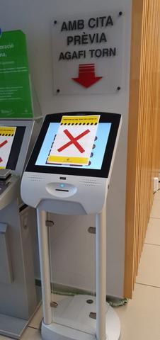 • S'han separat les taules d'atenció dos metres entre elles. Es garantirà la distància mínima entre l'usuari i els agents d'atenció mitjançant la senyalització amb cadires, línies, cintes i altres elements que marquen la separació a mantenir