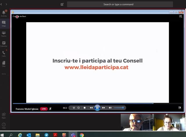 El regidor de zona, Ignasi Amor, i la regidora de Participació i Lluita contra la Corrupció, Elena Ferre, s’han reunit amb veïnes i veïns del barri a través de la plataforma Teams en una trobada on s’ha tractat especialment sobre l’estat de la ciutat i de Cappont en el context de l’actual crisi i les mesures que ha adoptat l’Ajuntament.