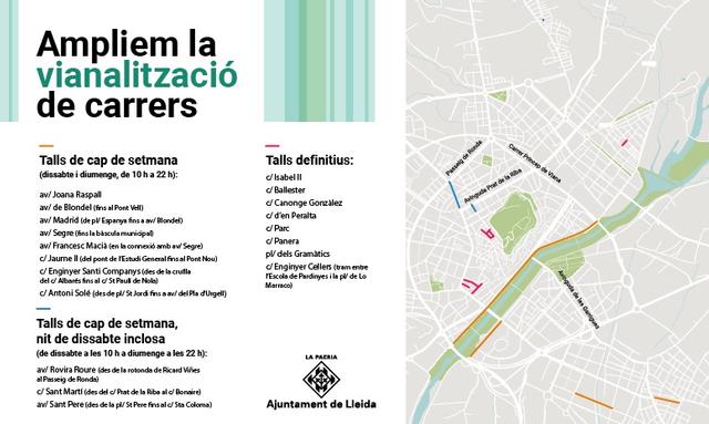 L’Ajuntament de Lleida segueix avançant en la definició del mapa de la ciutat que inclou la conversió de carrers en zones de vianants, amb talls provisionals o definitius, per pacificar el trànsit viari i afavorir els desplaçaments a peu. La Regidoria de Mobilitat, Vialitat, Trànsit i Horta ha iniciat aquest mes de maig la vianalització de diverses vies, que s’han anat ampliant els caps de setmana, a mesura que es va implantant l’actuació. Així, al plantejament actual s’afegeix un nou carrer de la Bordeta, el C/ Antoni Solé, des de la plaça de Sant Jordi fins a l’avinguda del Pla d’Urgell. La conversió de carrers en espais per a vianants s’ha fet aprofitant la situació d’emergència per la Covid-19, en què, d’acord a l’estat d’alarma, s’ha hagut de reduir i regular la circulació, tant de vehicles com de persones. L’objectiu és aconseguir una major conciliació del trànsit i reduir les emissions contaminants. Es contemplen tres tipus de talls: