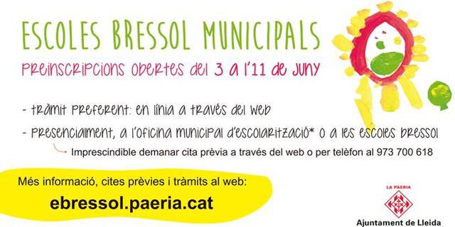 El termini de preinscripció, que també es pot fer totalment en línia i així ho recomana la Paeria per aquest proper curs escolar, finalitzarà el dia 11 de juny.