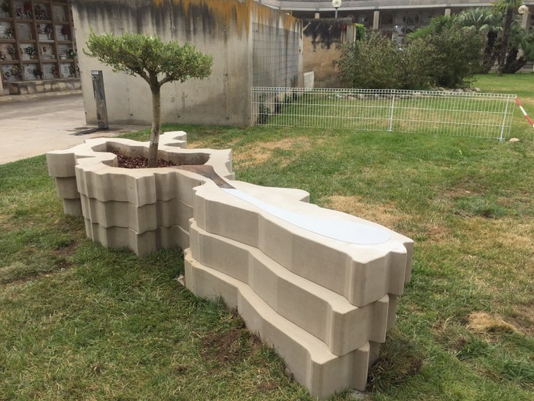La tinent d’alcalde Montse Pifarré ha visitat els treballs que han consistit en la col·locació de la base de pedra de l’escultura i en la plantació de l’olivera que creixerà en el si d’aquesta obra d’art. La peça s’ha col·locat en la zona de l’entrada al Cementiri, pel carrer Francesc Bordalba.