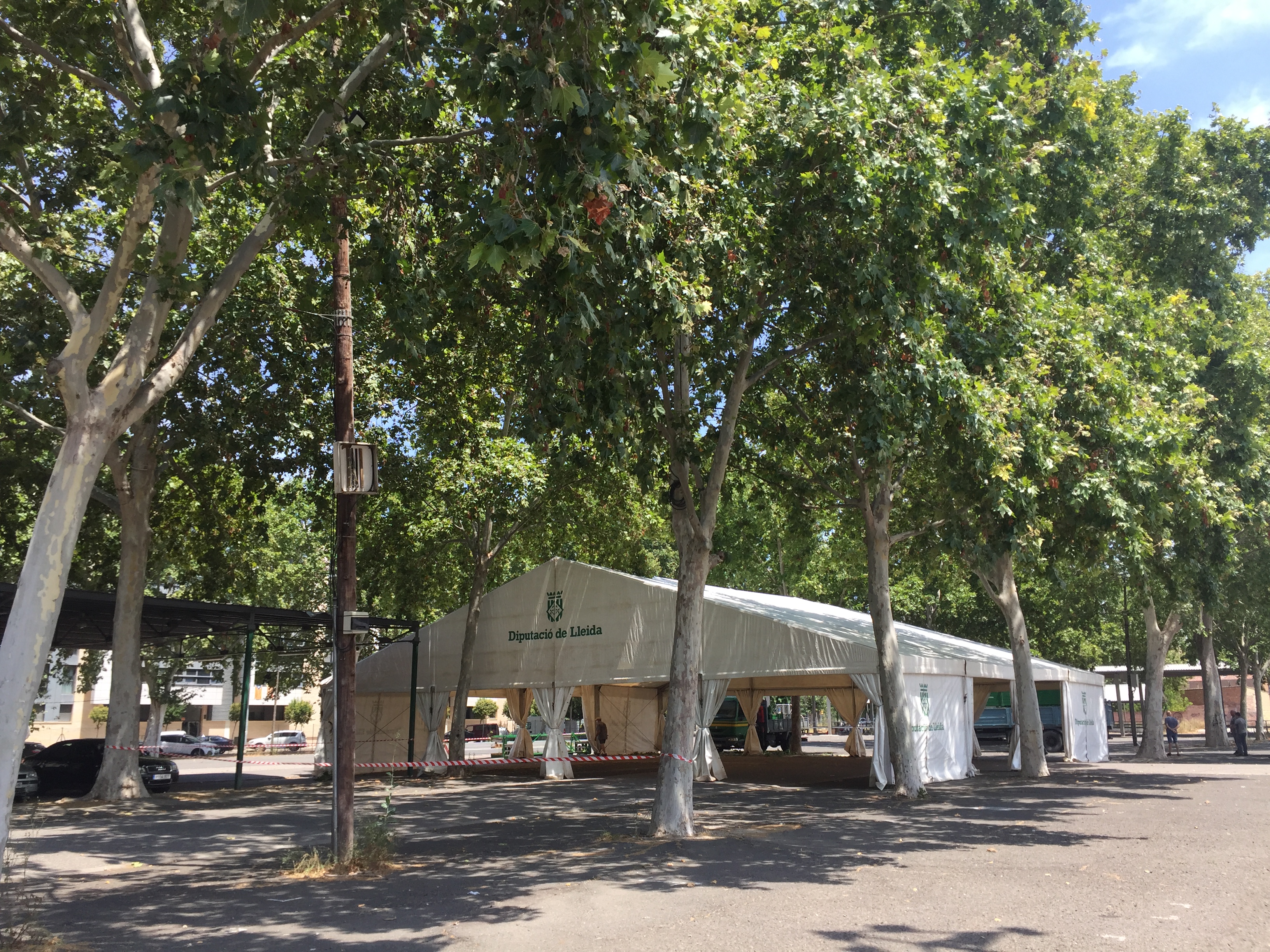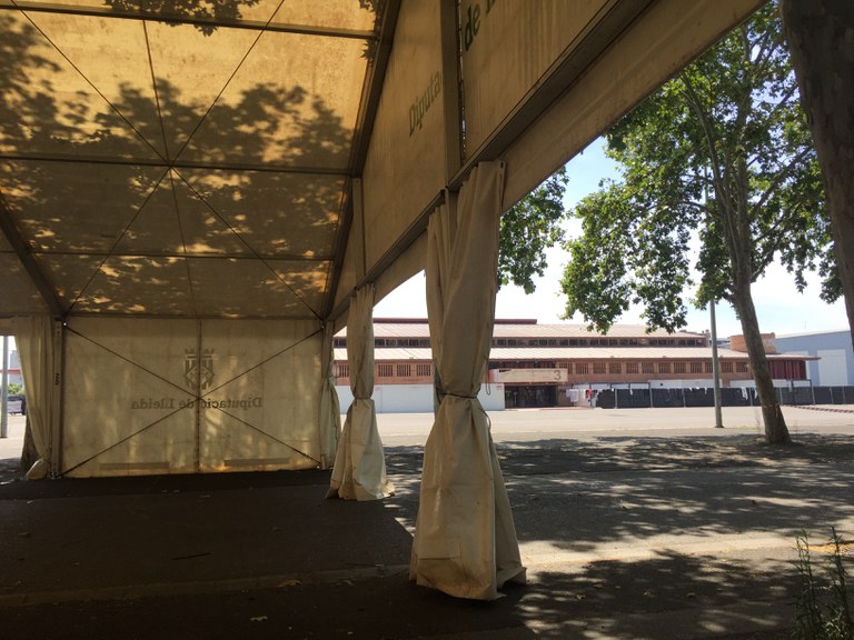 La Paeria ha habilitat una carpa cedida per la Diputació de Lleida al recinte de Fira de Lleida, en una zona ombrejada a pocs metres dels pavellons 3 i 4, perquè les persones que hi pernocten puguin romandre durant el dia en un espai cobert i amb serveis. Es tancarà un perímetre de 61.700m2 -pavellons 3 i 4 inclosos- perquè comptin, a més, amb un espai exterior ampli.