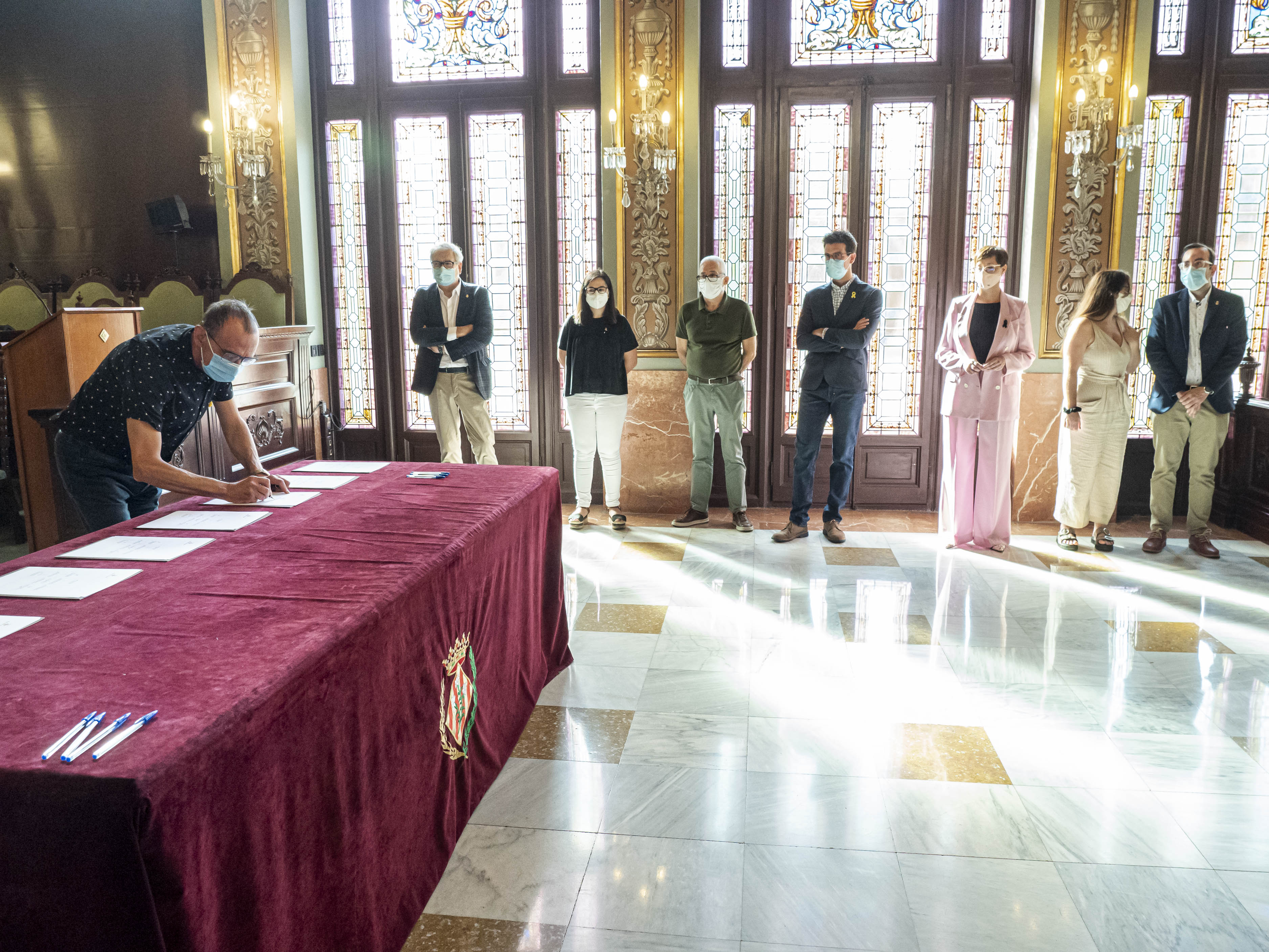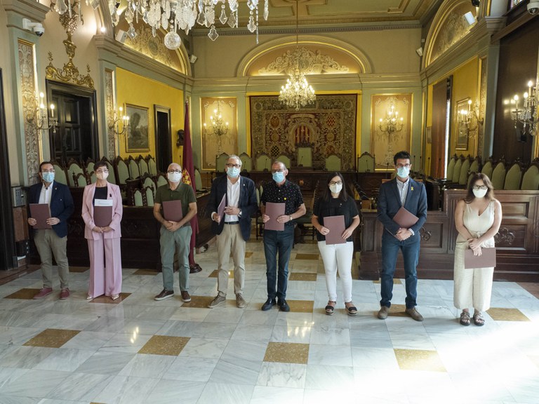 El Ple de l’Ajuntament de Lleida ha ratificat la declaració institucional que aquest matí, en un acte públic al Saló de Sessions de la Paeria, han rubricat el paer en cap Miquel Pueyo, el cap de l’oposició, Fèlix Larrosa, i els portaveus dels grups municipals: Jordina Freixanet (ERC), Jaume Sellés (PSC), Toni Postius (JxCat) Ángeles Ribes (Ciutadans), Elena Ferre (Comú de Lleida) i Xavier Palau (PP).