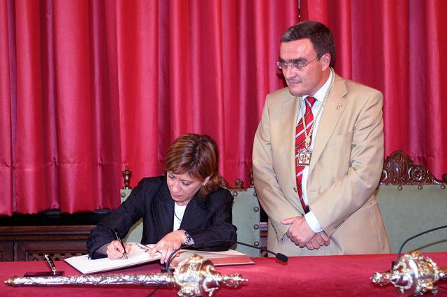 El paer en cap i els representants de la Corporació ha rebut Elena Espinosa que ha signat al llibre d'Or de la Paeria i ha rebut una edició del Llibre dels Usatges com a regal institucional. Abans de la visita a la Paeria, la ministra ha participat en un dinar organitzat pel Fòrum 2001.