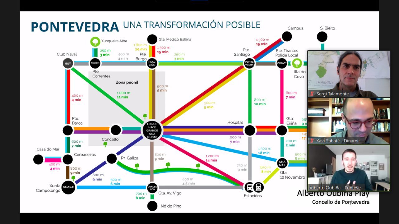 Per la seva part, Alberto Oubiña, regidor de l’Ajuntament de Pontevedra, ha explicat la transformació urbana que la seva ciutat ha viscut els darrers 20 anys marcada per l’eliminació del trànsit al centre urbà i les vianalitzacions. Al nucli històric la reducció de la presència de vehicles ha estat del 97%; a la primera corona, del 77%, i al cinturó exterior, del 53%. En paral·lel, la demografia ha augmentat un 33% i les emissions de CO2 han baixat un 67%.