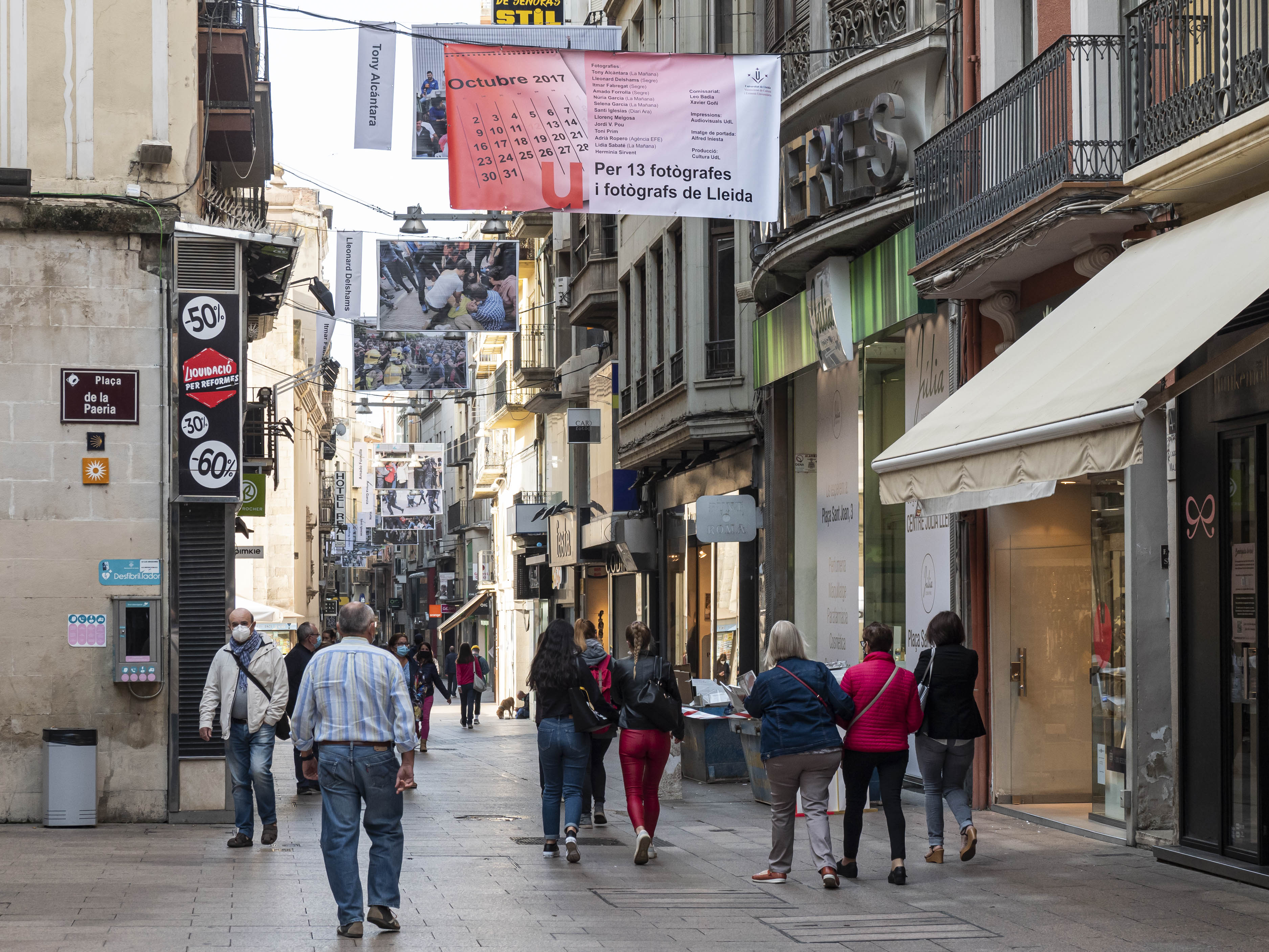 Una exposició de fotografies en lones de gran format situades al carrer Major, entorn de la Paeria, permetrà a la ciutadania de Lleida tornar a visibilitzar i recordar els Fets de l'1 d'Octubre de 2017 a la ciutat, ara fa tres anys. La mostra col·lectiva, sota el títol "U: Per tretze fotògrafes i fotògrafs de Lleida", recull les instantànies que van captar tretze professionals lleidatans de les votacions en el referèndum d'autodeterminació convocat pel Parlament de Catalunya i suspès pel Tribunal Constitucional, i de les càrregues que van fer la Policia Nacional i la Guàrdia Civil per impedir-lo.