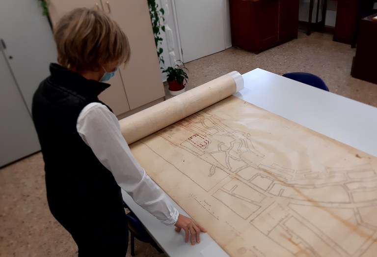 L’Arxiu Municipal de Lleida restaura un plànol urbanístic de la ciutat fet per Julio Saracíbar el 1869