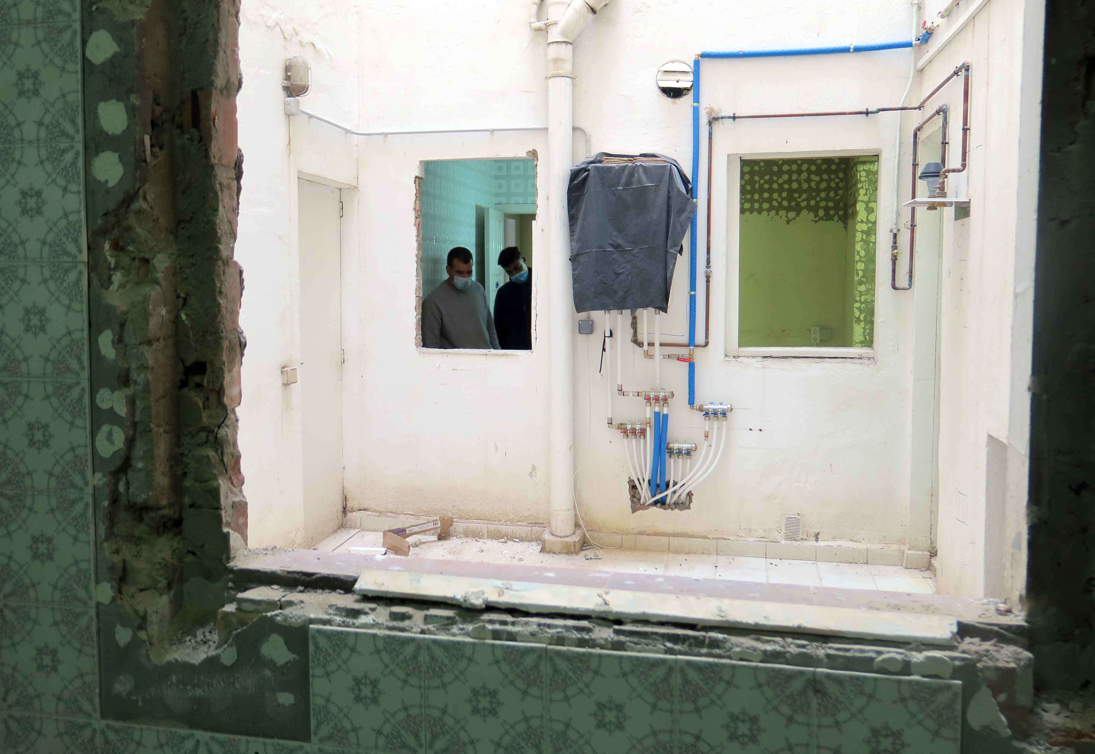 Sergi Talamonte ha comprovat l’avenç del ritme de les obres en aquest pis, que es convertirà en l’habitatge dels cinc joves que ara hi treballen, abans de finals d’any.