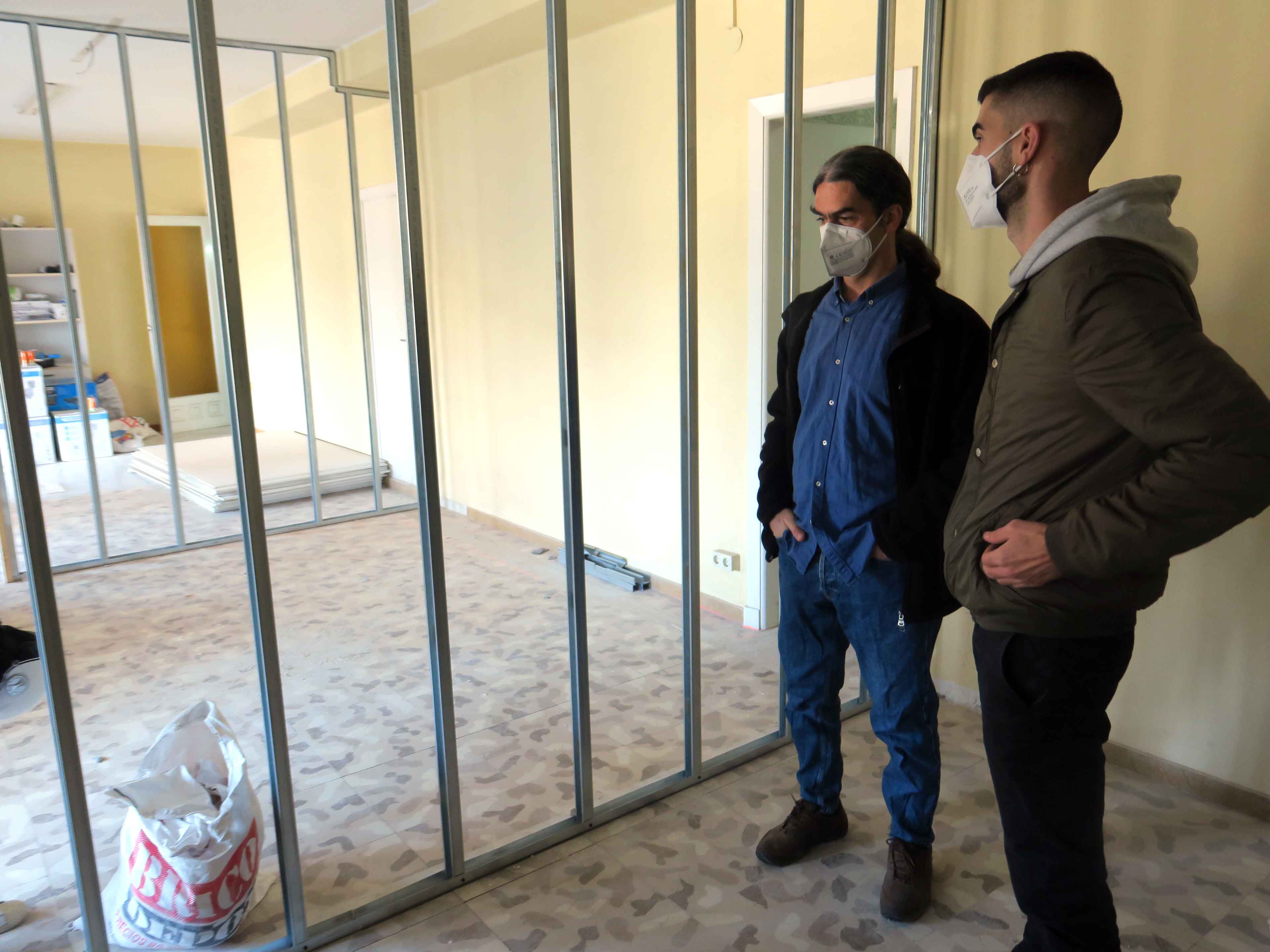 L’Empresa Municipal d’Urbanisme ha cedit tres habitatges a l’associació Obrint Portes per a facilitar-ne el lloguer a joves amb dificultats per accedir al mercat lliure El tinent d’alcalde Sergi Talamonte fa una visita a les obres que estaran enllestides per poder entrar a viure a finals d’any