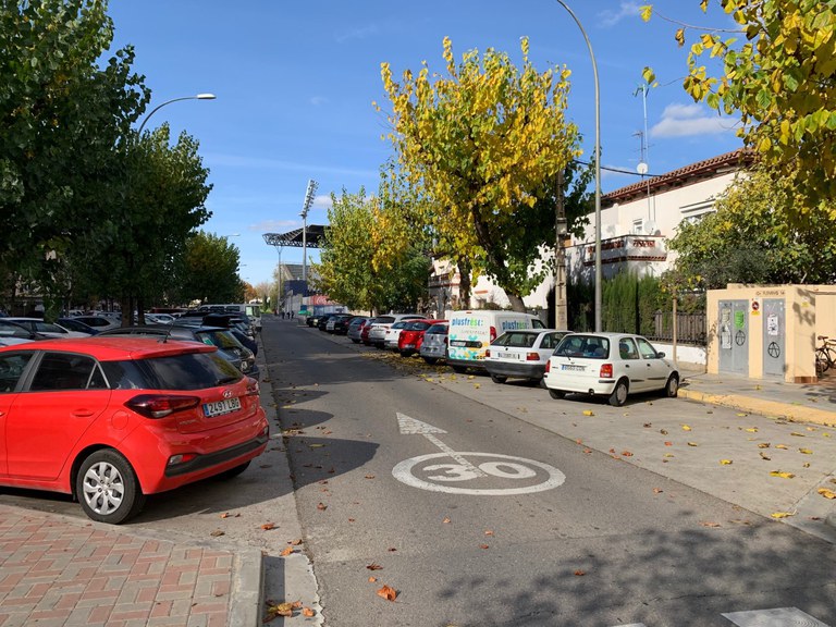 Per encabir el carril bici s’adapta l’espai de maneres diferents. En el primer tram, entre Ronda i l’avinguda de Navarra, l’aparcament del costat de les cases es passa de bateria a filera, aprofitant l’espai guanyat per al nou carril bici.