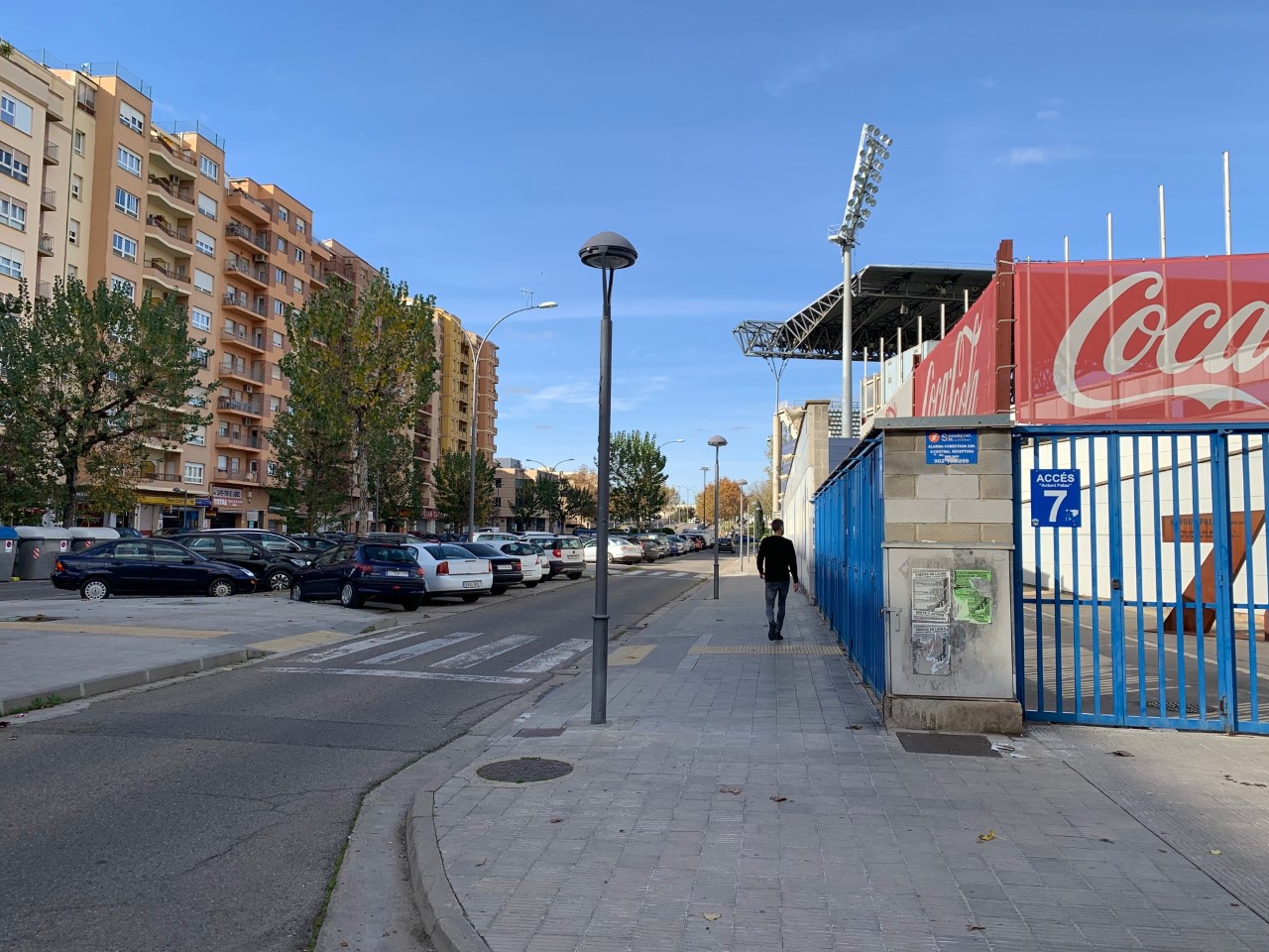 A partir de l’avinguda Navarra, aquest tercer carril més pròxim a l’estadi es tanca al trànsit de vehicles, com ja passava en dies de partit, i es segrega un espai per a l’ús de bicicletes.